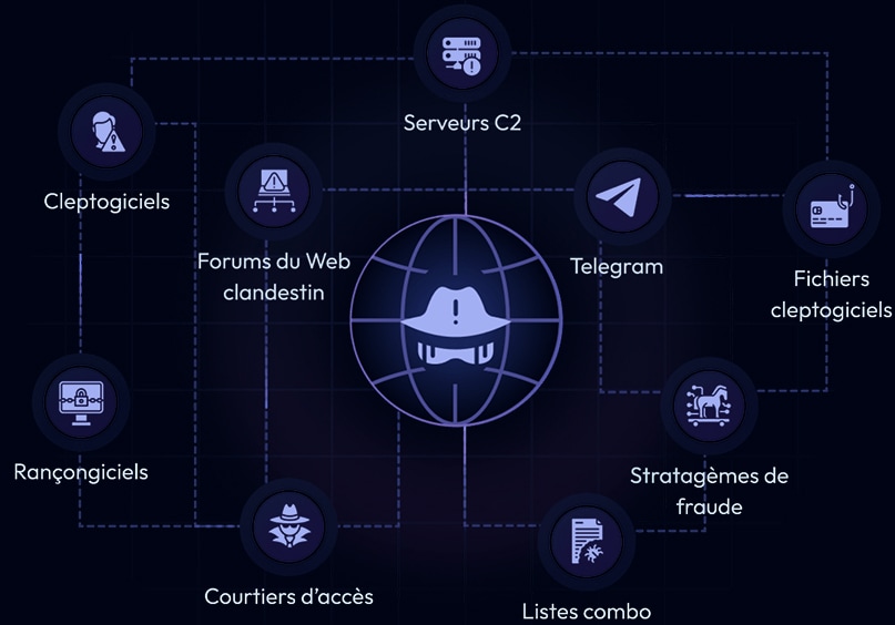 Les forces de l'ordre et les équipes de sécurité du monde entier s'appuient sur la couverture fournie par notre collecte continue de données des réseaux cybercriminels.