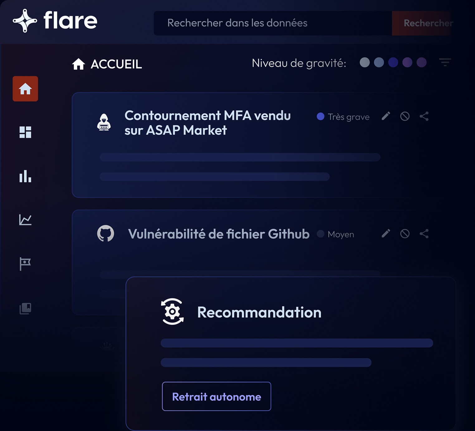 « D'autres solutions nous auraient présenté des milliers de fuites potentielles avec lesquelles il était impossible de travailler pour notre petite équipe. Flare était le seul à pouvoir filtrer et prioriser les fuites de données avec succès grâce à leur système de notation à 5 points. »